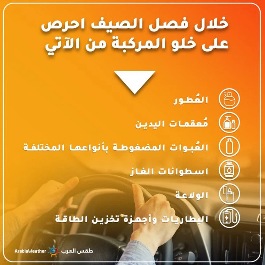 With the high temperatures during these days and the continued use of sterilizers due to the Corona pandemic, users of these sterilizers should be careful not to leave them in the car and expose them to heat or the sun; The fact that this poses a great danger, may lead to the burning of the vehicle, God forbid, due to the fact that it contains a high percentage of alcohol.