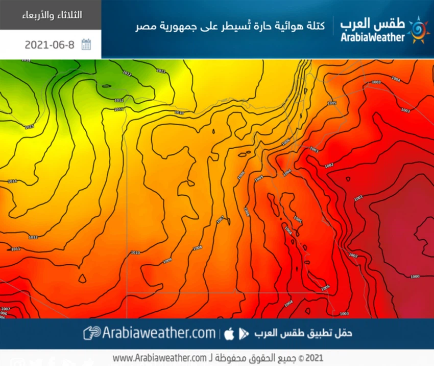 This hot weather comes as a result of the control of the upper air altitude towards the region in conjunction with the extension of Sudan’s seasonal thermal depression to center in southern Egypt, which leads to an increase in temperatures in most areas.