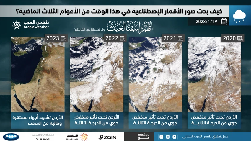 Weather of Arabia - Far from the stable atmosphere in the Kingdom, we will return in the archive to the past three years. So that the archival data available at the Arab Weather Center shows that the Kingdom of Jordan was affected at this time in the past three years by depressions that brought abundant rain and snow to some of the kingdom's highlands at the time. However, the situation is completely different these days, as the Kingdom is still far from the usual winter depressions and is affected by an air elevation in all layers of the atmosphere that imposes a stable atmosphere and temperatures higher than their normal rates. Indeed, the weather, for example, in the Jordan Valley, the Dead Sea and Aqaba is closer. What would be the case for the spring, including for the winter.
