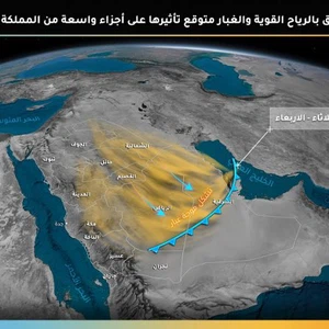 The dust wave reaches the eastern region on Tuesday evening, and it includes most of the regions of the region, including Dammam, with the hours of Tuesday / Wednesday night, and is accompanied by a decrease in the range of horizontal visions significantly and also a decrease in temperature.