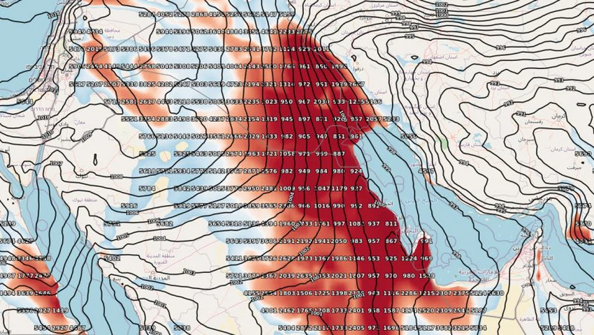The weather forecast department in Arab weather follows the distributions of atmospheric pressure and its difference between the north and southeast of the Arabian Peninsula, which pushes very low atmospheric pressure values ​​towards southern Iraq, through Kuwait to southeast Saudi Arabia. The distribution of air systems in this way works, God willing, on a clear activity of the so-called winds It is worth noting that the greater the pressure drop and its direction, the more intense these dust waves will be.