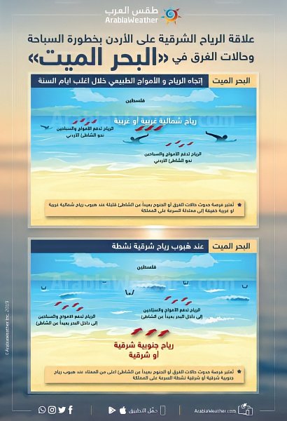 Arab weather warns of the danger of the waves of the Dead Sea rising significantly during this period, as a result of the activity of the eastern winds, which increases the risk of delinquency in the width of the sea water to the west, and may also lead to drowning, especially for people who are not professional in the practice of swimming.