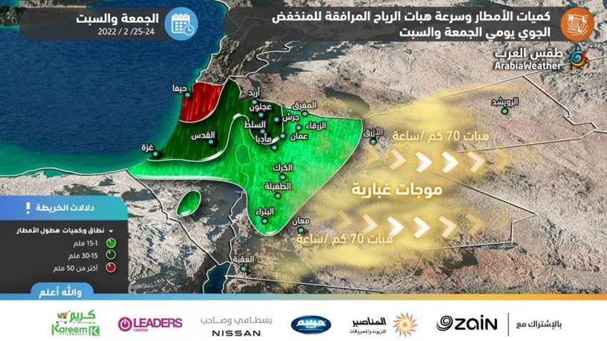 It is expected that active westerly to southwesterly winds will blow over the Kingdom on Friday, accompanied by strong gusts exceeding the 70 km/h barrier, causing dust and dust to be raised and possibly forming dust waves in desert areas and roads, but with the hours of Friday night / Saturday and Saturday there is a decline. The wind speed is strong, and the speed becomes moderate, sometimes active.