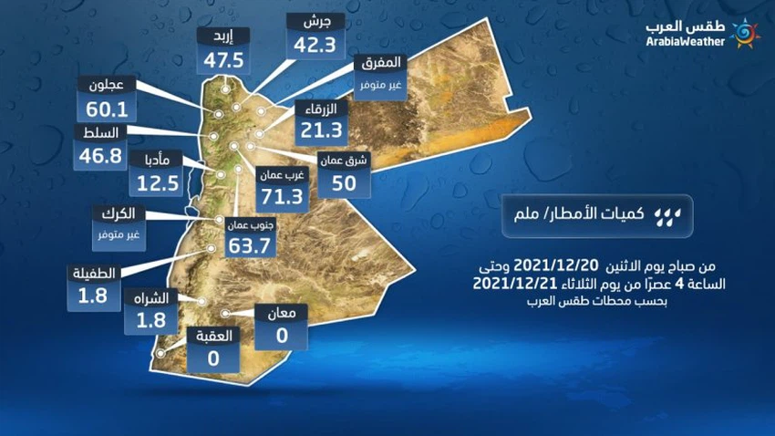 As we entered the winter square of 2021/2022 and this coincided with the effects of a third-degree atmospheric depression, the statistical rain data issued by the Jordan Meteorological Department also showed a significant improvement in rainy Jordan, although the cumulative amounts of rain are still below the average.