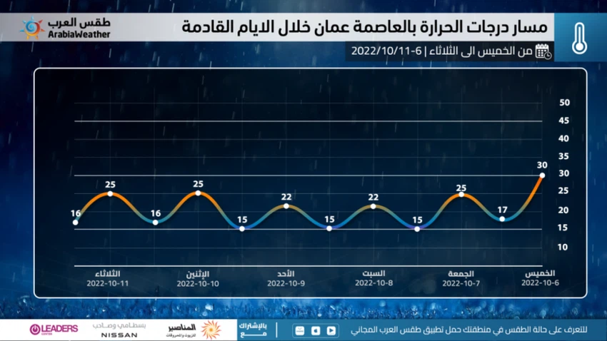It is expected that the temperature will drop significantly during the night hours, as it is expected that the lowest temperature in the capital, Amman, will be 15 degrees Celsius, and the tangible temperature will be less than that in a number of areas. It is recommended during the next night hours to wear warmer clothes compared to the previous nights, and the weather may not be suitable for outdoor sessions at night in several areas. Temperatures also drop to lower values in the eastern plains and southern highlands, and the lowest temperatures may touch 10 degrees Celsius in those areas.