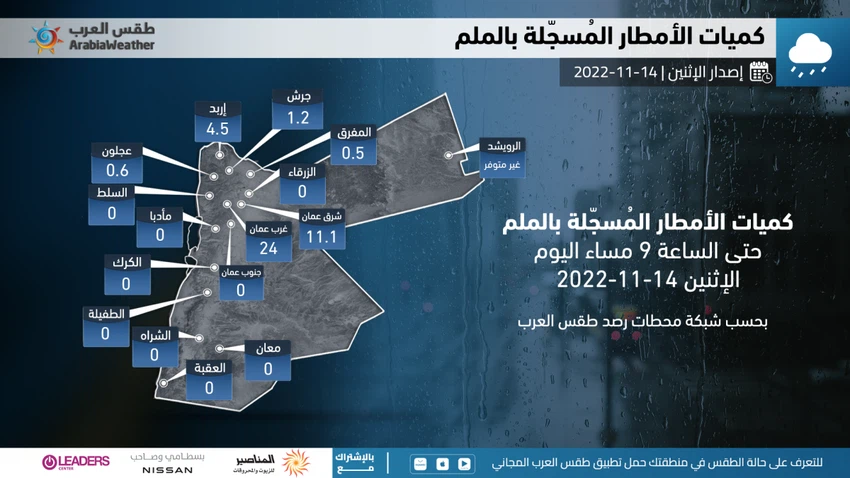 Next, the amounts of rain recorded according to the network of Arab weather stations