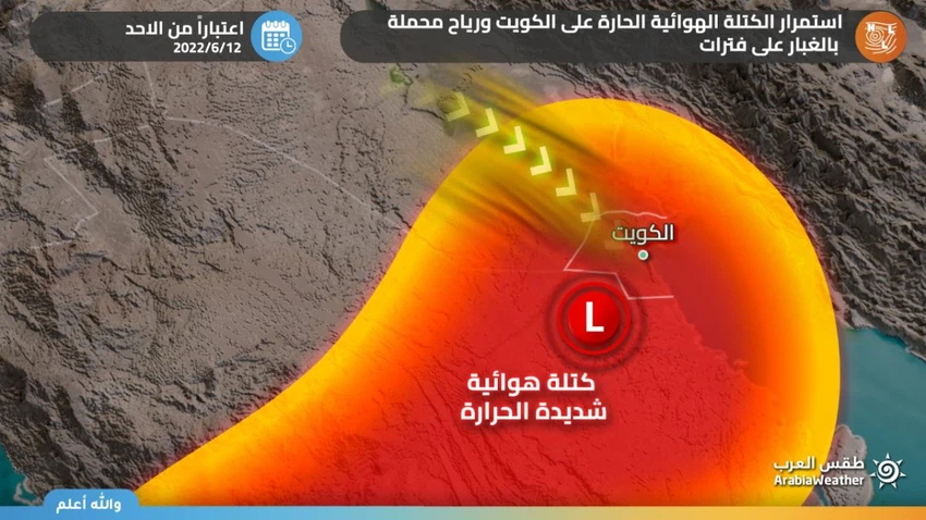 Arab Weather - The latest output of the numerical models processed by the Air Operations Department at the Arab Regional Weather Center indicates that Kuwait continues to be affected by a very hot air mass accompanied by a seasonal low-temperature extension in the coming days, another on temperatures in various regions of Kuwait, and very hot and exhausting weather prevails in most The country’s regions, especially in the interior parts, are dusty with varying intensity, especially at the beginning and end of the week.