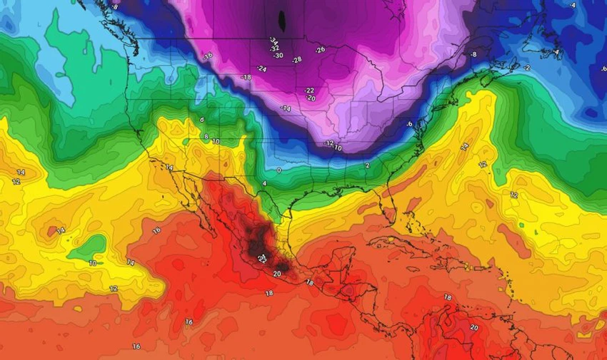 The polar vortex is rushing towards North America, including Canada and Greenland, in the form of a very cold and large air mass coming directly from the North Pole towards the North American continent and the mentioned areas, causing very cold winter weather, as temperatures in some areas drop to about 40-50 degrees Celsius below zero, which means a severe wave of severe cold, with widespread snowfall in several states, especially the northeastern states, and the occurrence of a severe state of freezing in large areas.
