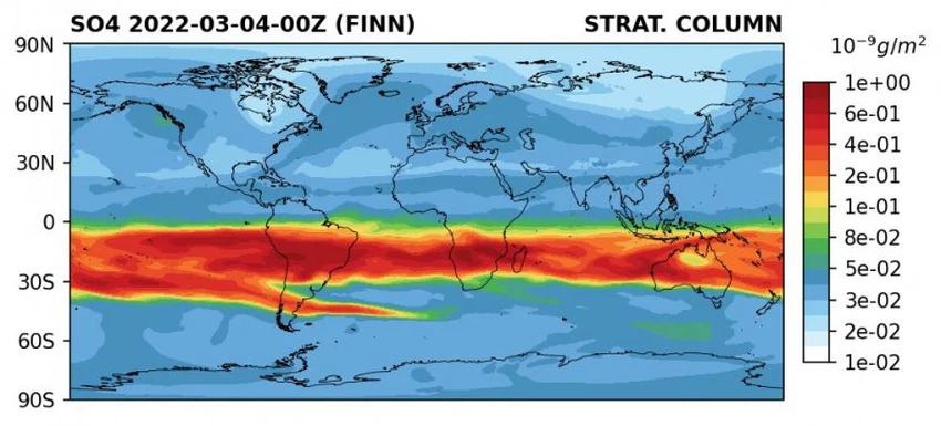 According to the numerical models that specialize in sensing the chemistry of the atmosphere, it was estimated that what was released after the eruption of the Tonga volcano was about 400,000 tons of sulfur dioxide particles, and despite its stay at high altitudes from the Earth’s surface in the atmosphere, its impact reaches heights close to The surface of the Earth, especially in those layers that control the weather and the shape of weather patterns, after the volcano ejects it, sulfur dioxide turns into sulfuric acid mist, which reduces sunlight from reaching the ground, and thus limits the amount of warmth we receive from the sun.