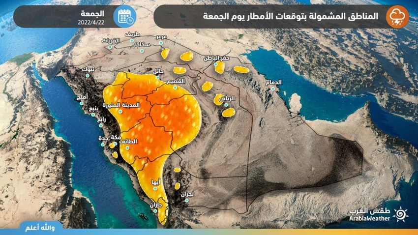 Weather of Arabia - Parts of the Arabian Peninsula region, including Saudi Arabia, will enter a period of air activity from Thursday 4/21/2022 until at least the end of the holy month. Forecasters at the Arab Weather Center for Meteorology and Forecasting say that the region is on a date with a large-scale rainy weather that includes many Arab countries during the coming days. It is considered the best this spring in terms of the area of the affected areas and the abundance of clouds accompanying them, after God’s will.