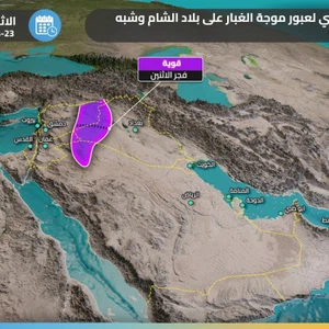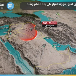 Forecasters in Arab weather said that the start of the dusty wave will be from the Syrian Badia and the regions of western Iraq and northern Saudi Arabia, with the evening hours and the night of Sunday / Monday, and the dust will be thick with almost no horizontal visibility.