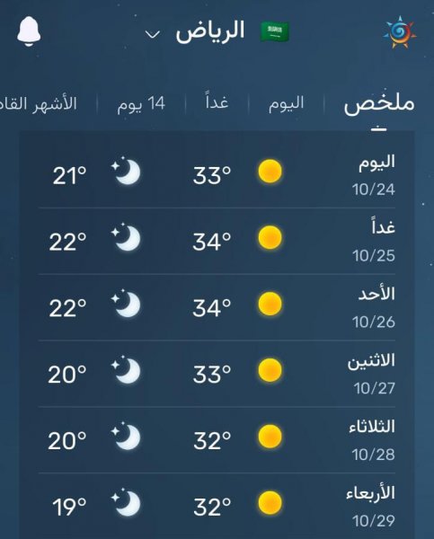 As the night progresses, minimum temperatures drop further and the weather turns very pleasant, especially at dawn in most areas of Riyadh, with a feeling of coldness in some areas, especially the north of the capital, with minimum temperatures reaching around 16-18 degrees Celsius, according to the Arab Weather app, in some areas of Riyadh, especially the north, with the weather tending to be cold after midnight and dawn.