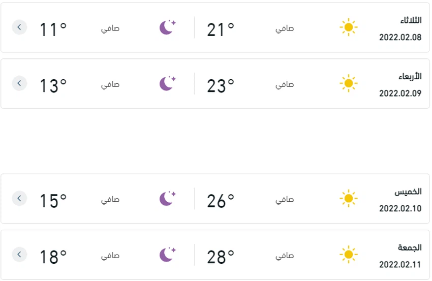 Arab weather - warmth is knocking on the doors of Riyadh again, as weather forecasts indicate that the city of Riyadh will be affected during the coming days of this week with successive rises in temperature, approaching 30 degrees Celsius at the end of the week during the day, while it reaches at night to 18 degrees Celsius.