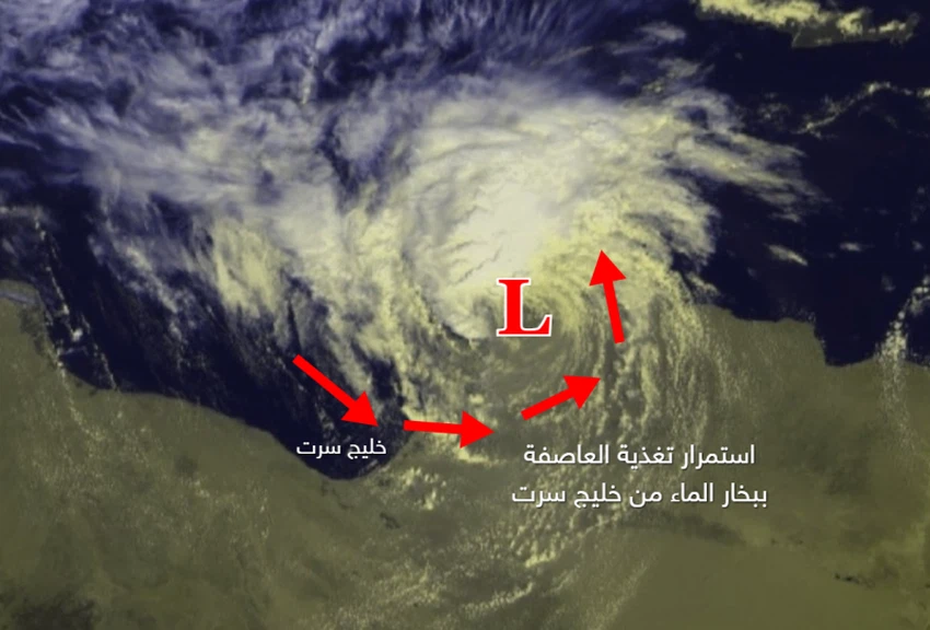 Although Storm Daniel quickly penetrated the Libyan mainland, this did not prevent its severe impact, and it did not lose its strength and momentum, because it received continuous nourishment coming through a sea breeze from the Gulf of Sirte, in addition to the significant warming of the water body.