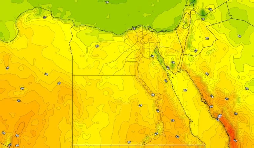 Temperatures are expected to be in the mid-twenties Celsius in most areas of northern Egypt, including some neighborhoods of Greater Cairo, while temperatures will reach 29-31 degrees Celsius in the southern regions, specifically in the southern Upper Egypt governorate, such as the city of Aswan and neighboring areas.