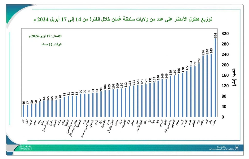 Weather of Arabia - Stations affiliated with the Ministry of Agricultural Wealth, Fisheries and Water Resources recorded distinct amounts of rain during the rain depression that affected the atmosphere of the Sultanate during the past days, and the highest amount of rainfall was recorded in the Wilayat of Mahdha, where it reached 301 mm.