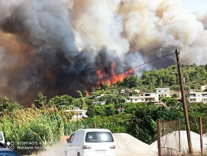 And the electrical current was cut off in general on most of the coastal villages for the fires caused by the collision of the escape cables with the strong eastern winds, however the smoke of the fires is rising from all directions, even from the plain agricultural logic!