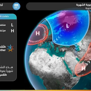 It is expected that the atmospheric pressure will decrease and the effect of the tropical air height from the southeast of the Arabian Peninsula will diminish or weaken, thus allowing the extension of some cold upper air canyons from the north through Iraq and Iran,