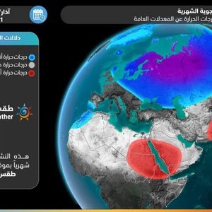 It is expected that the month will start with large fluctuations in the behavior of the Arctic Oscillation Coefficient (AO) between a large decline to reach neutral and possibly slightly negative values during the middle of the first week of the month, to rise again at the end of the first week and the sea of the second week in a strong and possibly approaching +4, amid expectations that the pole will continue to be positive until the end of the month.