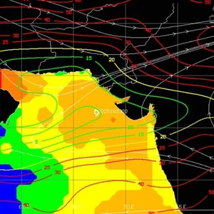 The surface temperature of the Arabian Sea is also relatively high, at 28-29 degrees Celsius. These temperatures are considered suitable for the development of tropical conditions, providing a rich source of thermal energy and latent moisture for the tropical system. This factor, along with weak wind shear, significantly enhances the chances of the tropical condition gaining sufficient energy to continue its growth and increase its structural organization, which increases the likelihood of its development into a tropical storm within the coming hours, God willing.