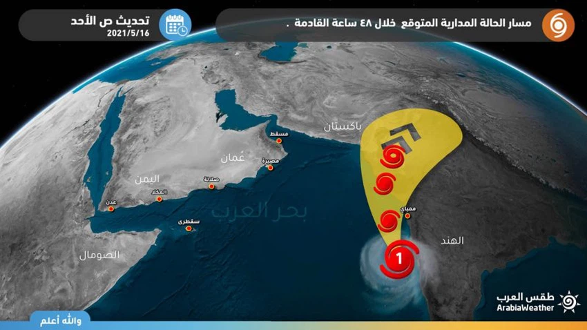 The Arab Weather website and application will follow up continuously and keep you updated on the latest developments of Cyclone Tao T in the Arabian Sea, moment by moment.