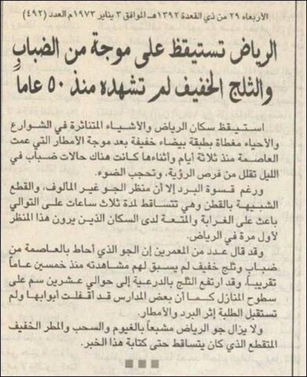Documents and facts: Snow fell on Riyadh on January 3, 1973.