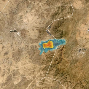 Weather of Arabia - Sinan Khalaf - The latest satellite imagery received by us in Arab weather shows the beginning of an evolution of some thunderstorm clouds in parts of the western highlands of the Kingdom, between Taif and Makkah. These clouds are expected to increase in density within the next few hours, and that the chances of rain will improve God willing, in Mecca and Taif
