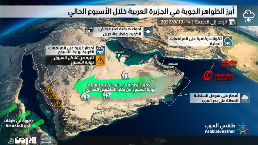 It is expected that the weather disturbances will intensify in the western sector of the Kingdom during the end of the week, as the rains will expand and intensify to include large parts of the south and west of the Kingdom, as a result of the influx of tropical moisture resulting from the remnants of the tropical depression.. More details .