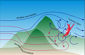 1. Air bumps resulting from the mountains ( in English: Orographic Turbulence): differs from the behavior of air currents when faced with the mountains, but the area of occurrence of bumps air are after crossing the air currents of the mountain, where the mountain barrier of air traffic, causing the disintegration of air currents to many waves Turbulent, which causes turbulence for aircraft entering the turbulence zone.