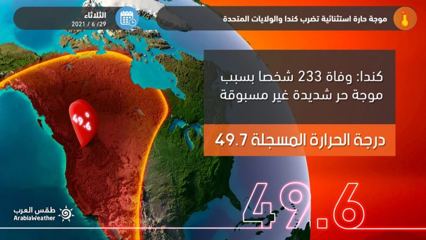 Weather of Arabia - The western parts of Canada and the United States of America are exposed to a historical, record and severe heat wave that those regions with a cold mountainous and oceanic climate have not experienced since the start of climate records, and these extreme temperatures have killed dozens in Canada and the United States.