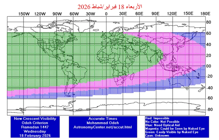 Conclusion: Sighting the crescent moon of the blessed month of Ramadan will be possible, God willing, in Saudi Arabia after sunset on Wednesday, Sha’ban 29, corresponding to February 18, 2026 AD. Accordingly, Thursday, February 19, is expected to be the beginning of the first day of Ramadan 2026 in Saudi Arabia.