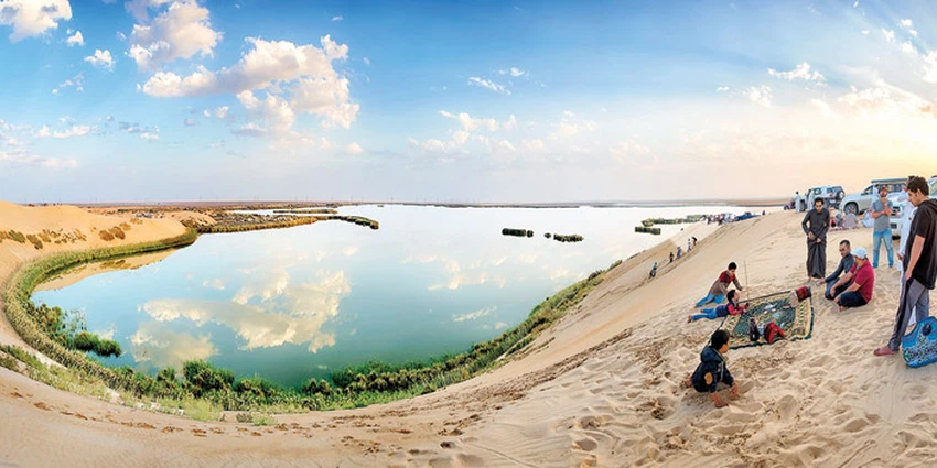 Weather of Arabia - Al-Asfar Lake is one of the most important shallow wetland lakes in the eastern region of Saudi Arabia. It is the largest water body in the Arabian Gulf, with an area of 340 square kilometers. The lake is located in the town of Amran, east of Al-Ahsa, and is one of the most important Al-Ahsa tourist attractions.