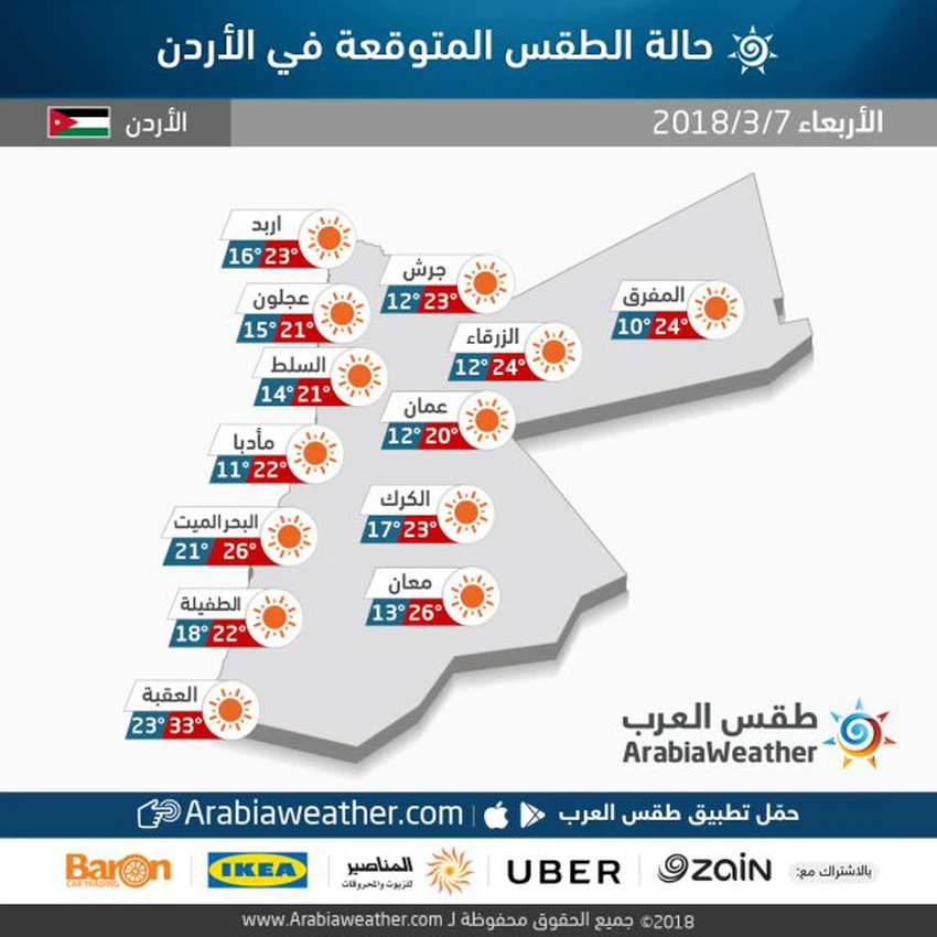 طقس العرب- تستمر درجات الحرارة أعلى من مُعدلاتها المُعتادة في مثل هذا الوقت من العام بحدود 3-4 درجات مئوية.