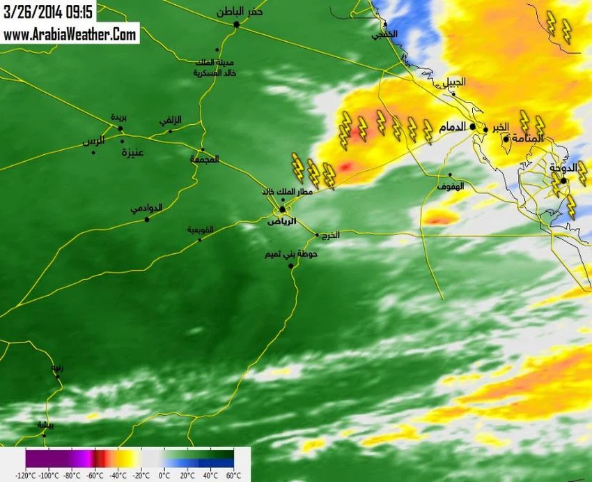 وكان موقع " طقس العرب " اشار في عدة تقارير سابقة من خطر العواصف الرعدية والبردية ، كذلك حذر من السيول ، حيث كانت المعلومات المستملة عبر الخرائط الجوية تشير الى تأثر الرياض والشرقية بحالة قوية من عدم الاستقرار الجوي.