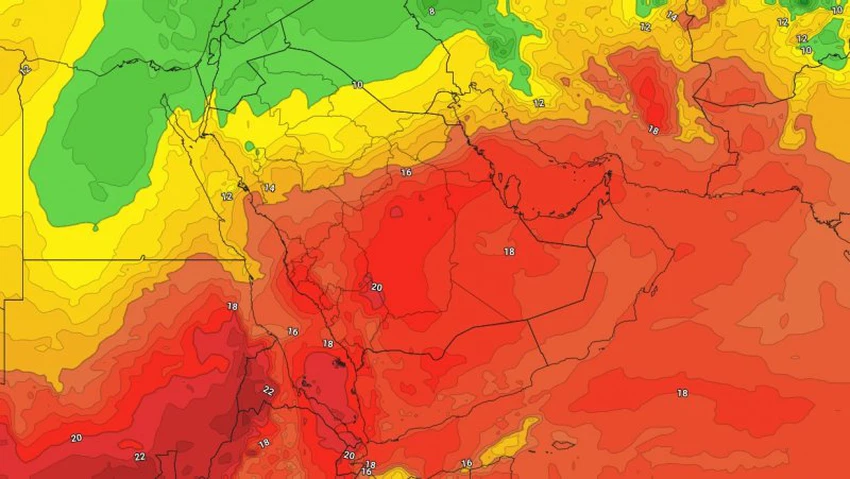 Weather of Arabia - The latest weather maps for simulating the movement of air masses indicate that a relatively cold air mass is expected to deepen into the Kingdom's atmosphere during the coming days, God willing, so that it will cause a significant decrease in temperatures in large areas of the Kingdom.