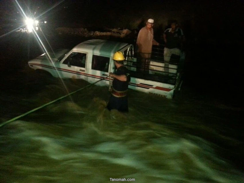 • بالصور: الدفاع المدني يُنقذ رجلين من الموت غرقاً بالسيول في المجاردة