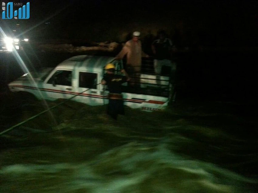 موقع ArabiaWeather.com  - أظهرت مجموعة من الصور التي نشرتها صحيفة سبق الإلكترونية، قيام الدفاع المدني في المجاردة جنوب غرب البلاد بإنقاذ شخصين من موتٍ مُحقق،بعدما احتجزوا بين مياه سيلٍ جارف في وادي "جرية" في منطقة بن زهير مساء يوم الأربعاء.