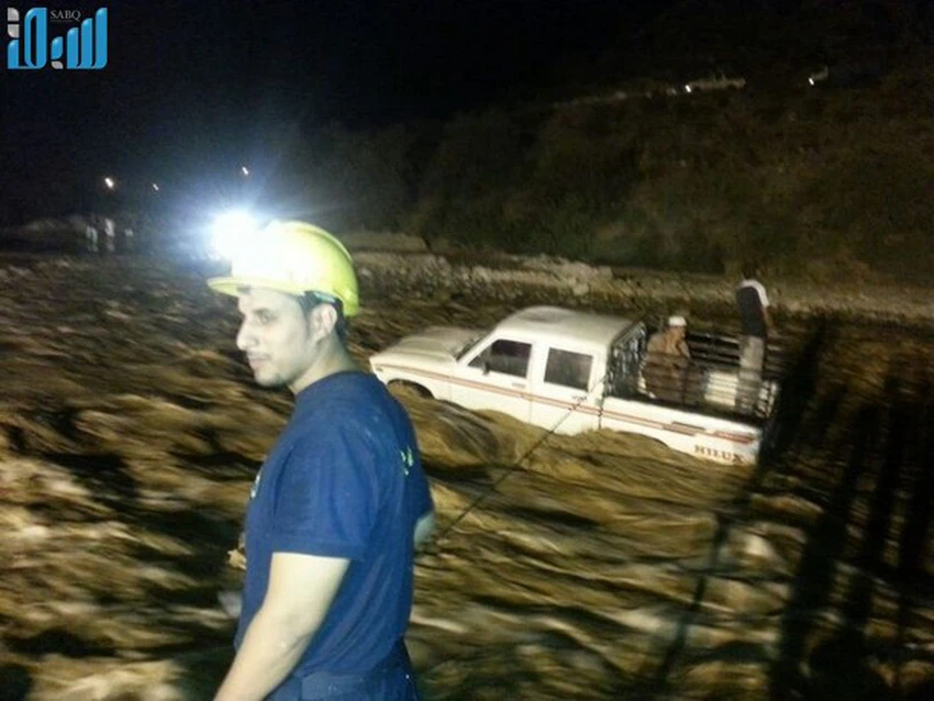 بالصور: الدفاع المدني يُنقذ رجلين من الموت غرقاً بالسيول في المجاردة