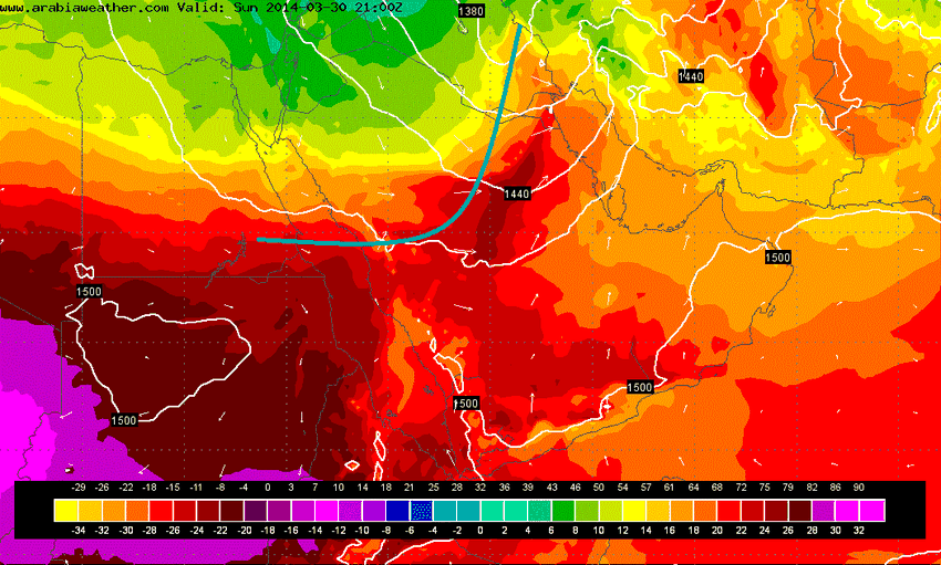 كتلة هوائية شديدة البرودة نحو بلاد الشام الاحد وتأثيرها على المملكة: