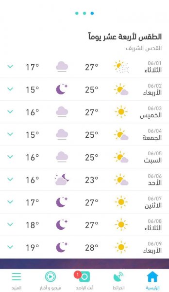 If you are browsing from the phone, you can download the new Arab Weather application that provides accurate weather forecasts for thousands of regions in the Levant, in addition to the notifications, urgent news and many special services. Press here