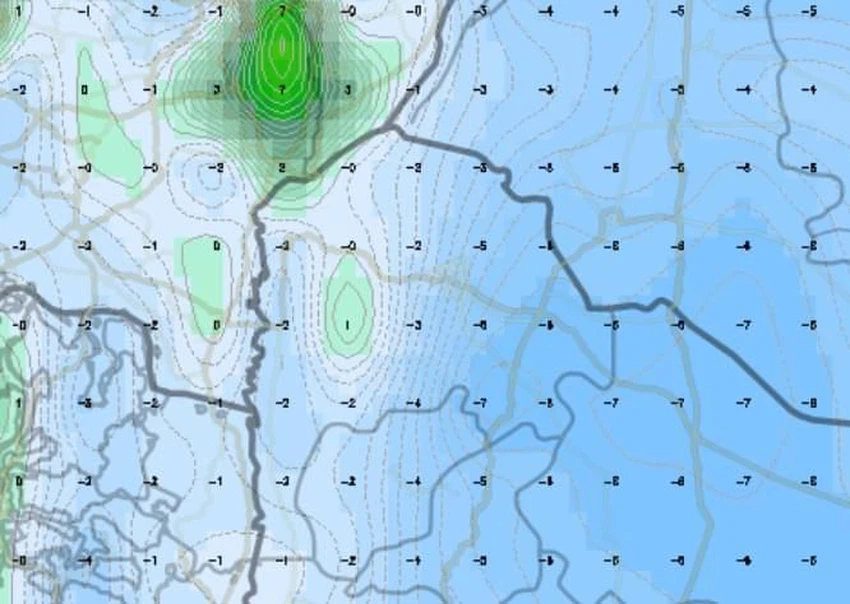 The attached map shows the expected surface temperature of the Earth at dawn and Monday morning.
