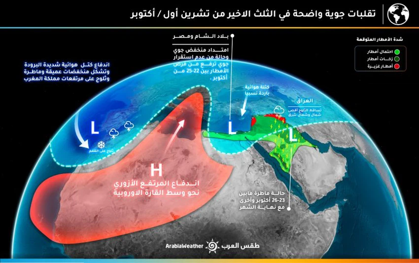 من ناحية علمية، يعود سبب التقلبات المتوقعة في الغلاف الجوي، على إثر اندفاع كتل هوائية شديدة البرودة نحو غرب البحر المتوسط ودول المغرب العربي بداية الأسبوع القادم، بالتزامن مع اندفاع مع اشتداد المرتفع الازوري على وسط البحر المتوسط ووسط القارة الأوروبية، وتعرف هذه المناطق باسم (مناطق الضد)،