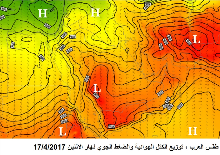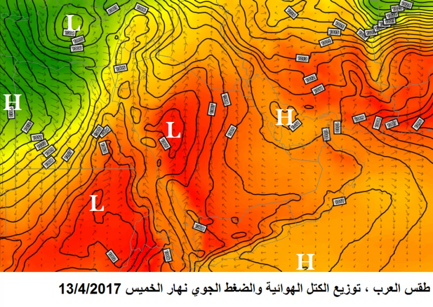 ويعود سبب ارتفاع الحرارة بهذا الشكل الكبير – في الأيام الماضية -الى اندفاع تيارات هوائية جنوبية دافئة وجافة نحو عموم المناطق تزامناً مع تأثير منخفض جوي خماسيني قادم من الغرب عبر شمال القارة الافريقية.