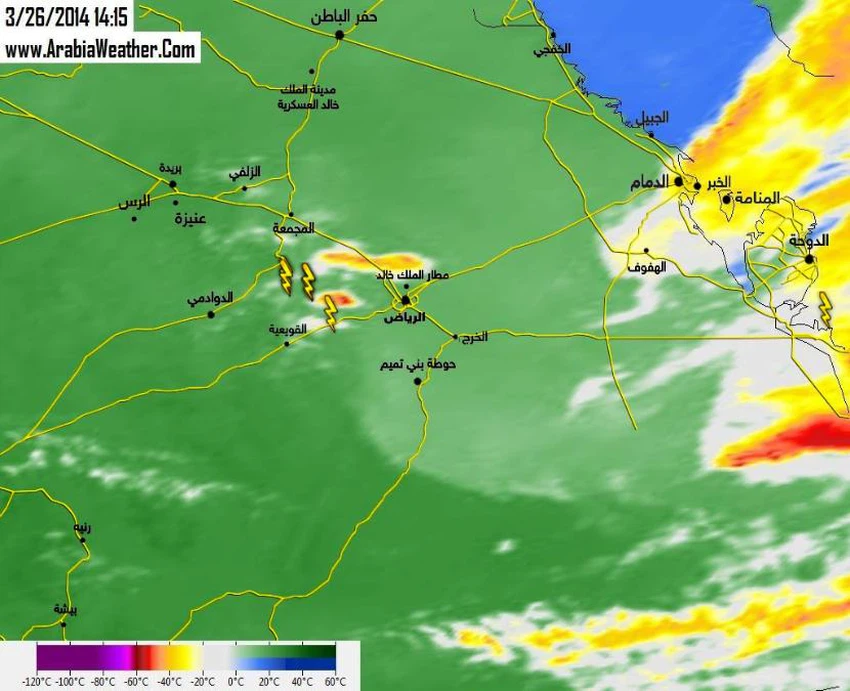 عواصف رعدية وبردية غرب وشمال الرياض عصر الاربعاء: