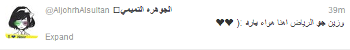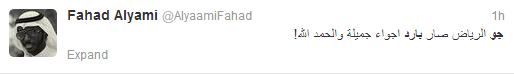إليكم بضعاً من التغريدات حول حالة الطقس بالسعودية ليوم الثلاثاء 3-12-1434 هـ: