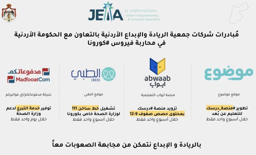 The Leadership and Innovation Association companies develop a distance education school platform (your lesson) and operate the first medical hotline in the region and allow donations to support the Jordanian Ministry of Health
