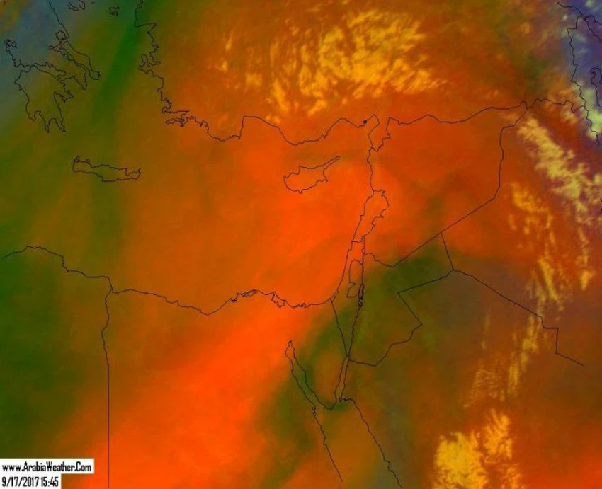 طقس العرب – لاحظ السُكّان في الأردن وفلسطين ومصر وشمال السعودية يوم الأحد ظُهور درجات غير مُعتادة من اللونين الأصفر والبرتقالي عند شروق وغروب الشمس، إضافة إلى ظُهور الشفق لفترة أطول من المعتاد.