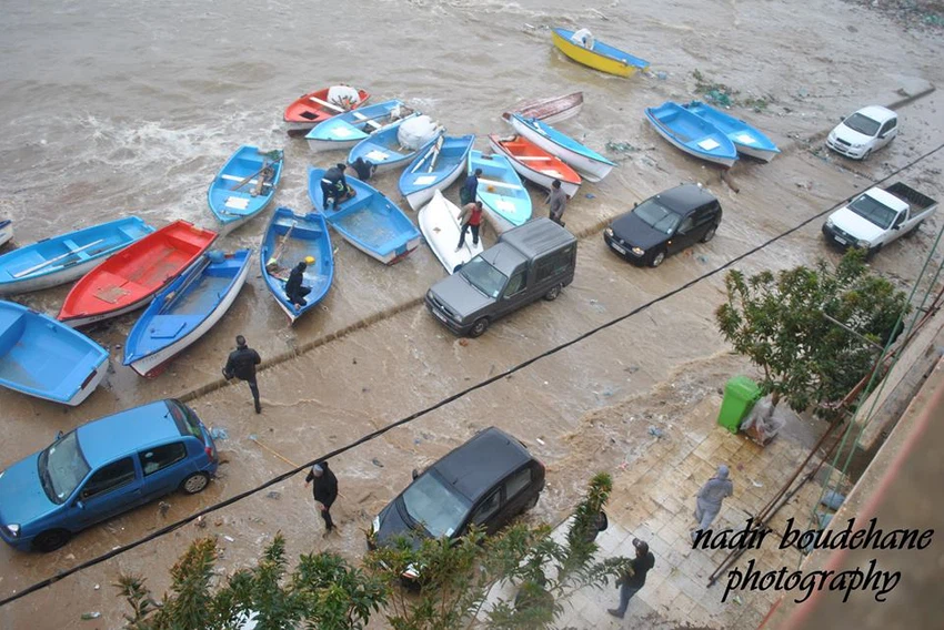موقع ArabiaWeather.com- تعرضت بعض أحياء مدينة جيجل شمال شرق الجزائر لموجات مدّ بحري قوية داهمت البنايات المُجاورة للبحر، تسببت بتكسير قوارب الصيد وإغراق الطرق الساحلية بمياه البحر.