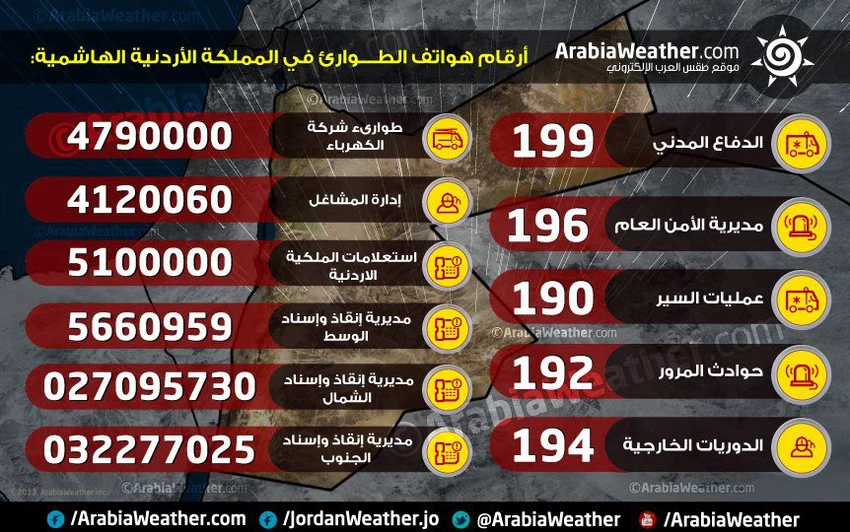 وفي مثل هذه الأحوال الجوية لابُد من الإحتفاظ ببعض الأرقام الهامة كأرقام الدفاع المدني والأمن العام والكهرباء وغيرها.