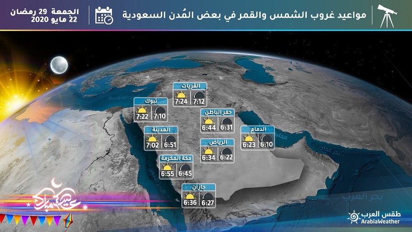 متى يبدأ عيد الفطر؟ أو متى سيكون أول أيام عيد الفطر وشهر شوال 2020-1441 فى السعودية ومصر ولبنان وسوريا والجزائر والكويت والإمارات والبحرين والسودان والمغرب وغيرها من الدول العربية، فالجميع ينتظر فرحة عيد الفطر بعد شهر الصيام والعطاء وبذل الخير، لذلك قمنا في طقس العرب بدراسة المعطيات الفلكية التي استطعنا من خلالها الاجابة على سؤلكم من ناحية فلكية، لكن في البداية لابد من الإجابة على سؤال اخر. ... التفاصيل من هنا